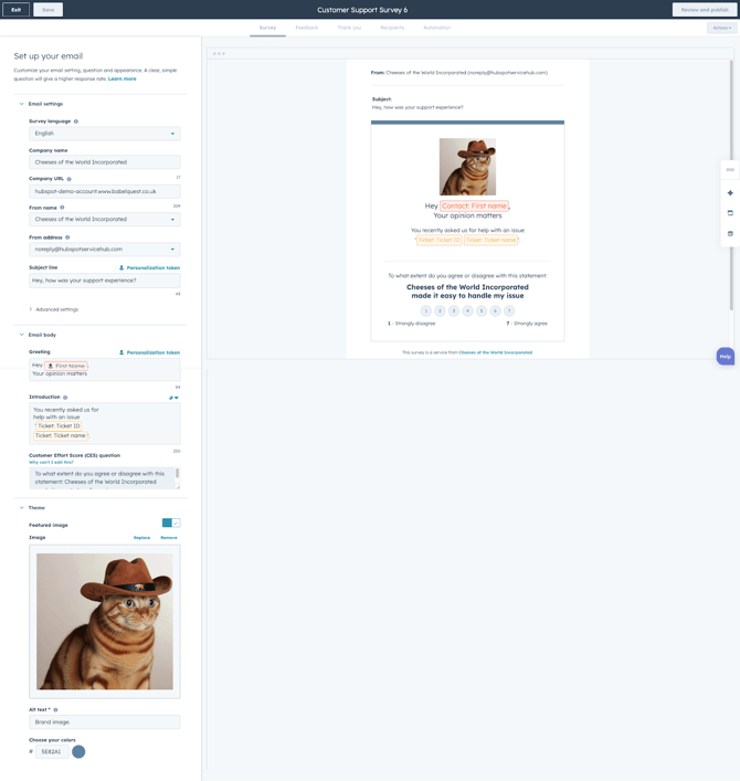 What it does: This hack helps you automatically send a Customer Effort Score (CES) survey in HubSpot whenever a service ticket is closed - giving you real-time insight into how easy it was for customers to get help. The CES survey is built into HubSpot Service Hub under Service Feedback Surveys, so you can start using it straight away.