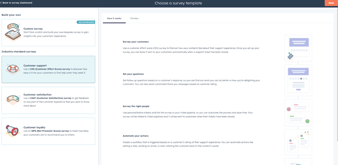 - Choose the Customer Support (CES) survey - it’s ready-made and easy to customise.