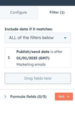 - Apply a filter on Publish Send Date to define your reporting window, e.g., after January 2025.