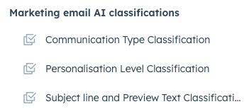 HubSpot provides special properties, often accessible through the Advanced filters area, that classify your email content based on its AI origins. You can use this to create custom views and track performance.